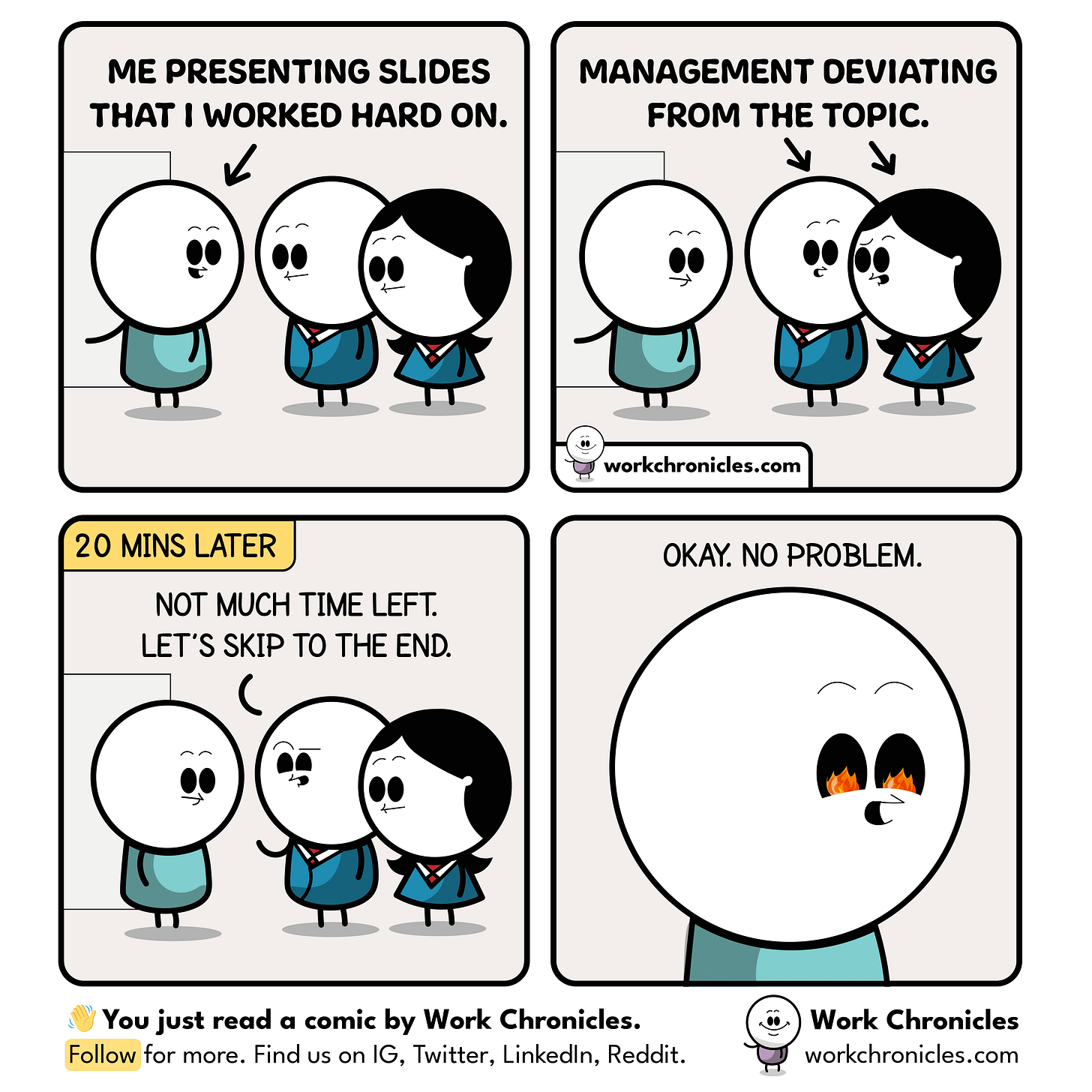 (comic) Work hard on the slides they said